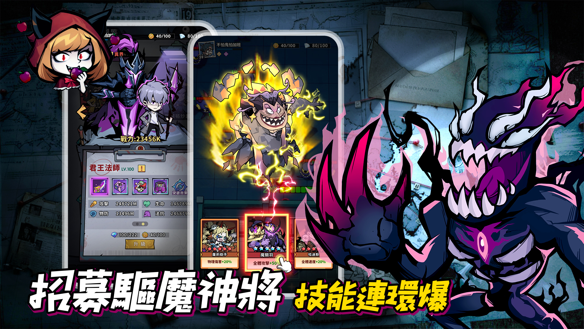 百位英雄任你調遣,陣容千變萬化!前排肉盾、後排輸出、輔助拉條…巧妙搭配才能守住最後一道防線!每個房間都是新戰場,靈活調整陣容,應對不同魔物進攻,打出你的獨家戰術!