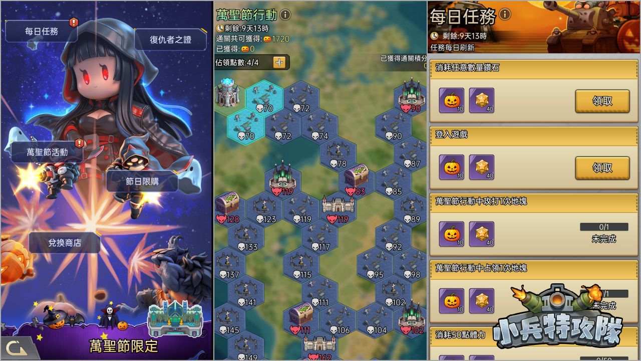 南瓜警報響起!Q版軍武塔防手遊《小兵特攻隊》於今年萬聖節特別推出全新大型活動—「萬聖節行動」,活動自10月31日起限時開放,帶來全新地圖佔領玩法與南瓜幣兌換機制,更有「傳奇復仇者」兵種同步登場,邀請各位指揮官挑戰戰略極限、掃蕩敵方據點,搶占戰場主導權!
