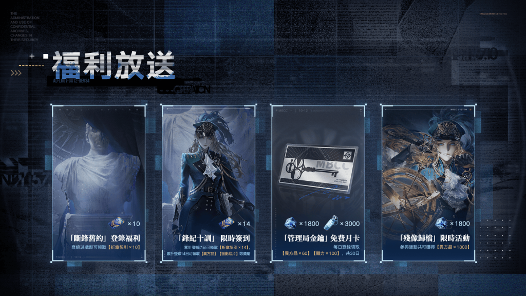 【管理局金鑰】三週年免費月卡(累計領取1800異方晶、3000體力)