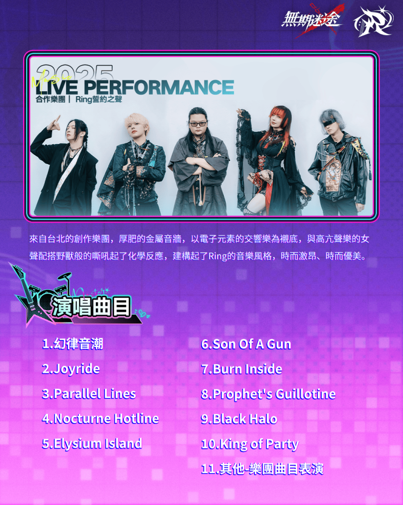 「上街頭 一起接上鴨頭吧!」線下音樂派對即將展開,本次邀請合作樂團「Ring誓約之聲」演唱10首無期迷途經典曲目,熱烈邀請局長們親臨現場,享受音樂饗宴,並打卡領到限定鴨寶頭套-輕薄款!
