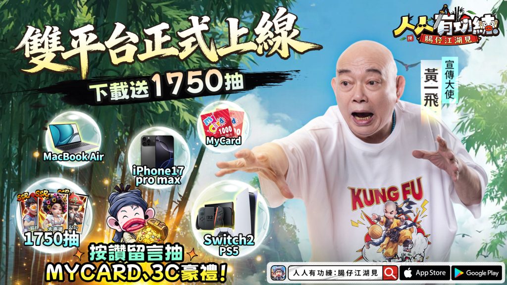 《人人有功練:腸仔江湖見》事前登錄活動熱烈反應,預約人數突破百萬!官方特別宣布,將全服發送「預約達成獎勵」,包含元寶、專屬頭像框與 S+ 俠客自選等豐厚獎勵,官方粉專中抽獎活動也還在火熱進行中,參與活動即有機會贏MyCard點卡、iPhone17Air等好禮。