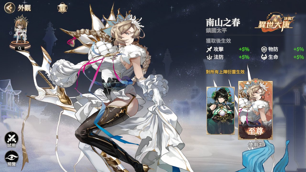 圖3:專屬造型「南山之春」,賦予全隊屬性加成!