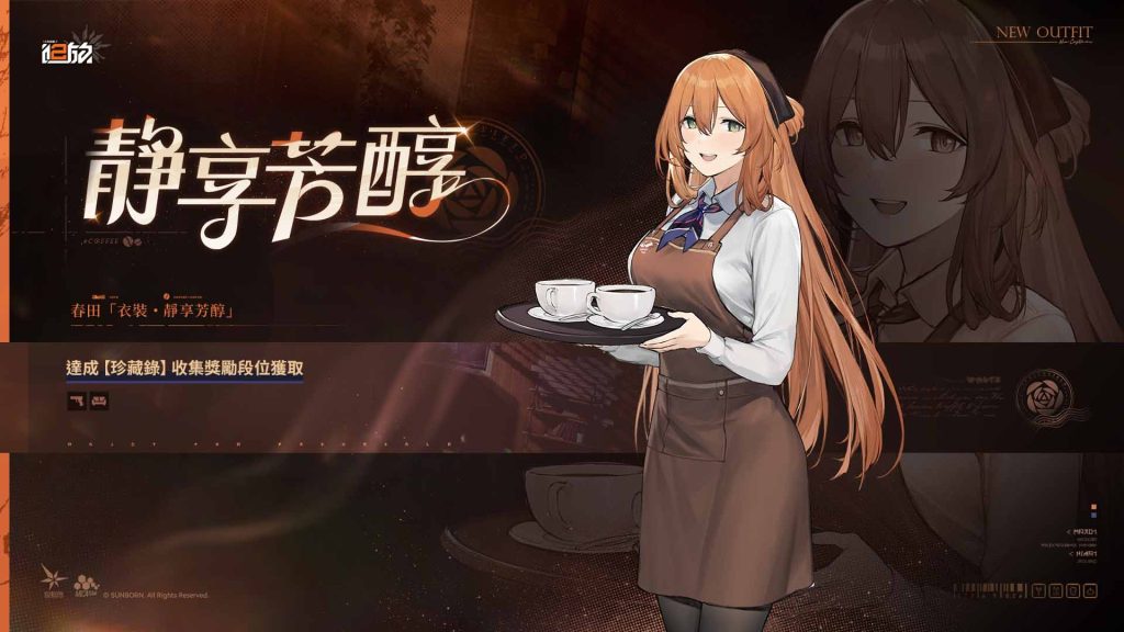 春田「衣裝.靜享芳醇」於版本更新後達成「珍藏錄」收集獎勵段位獲得。