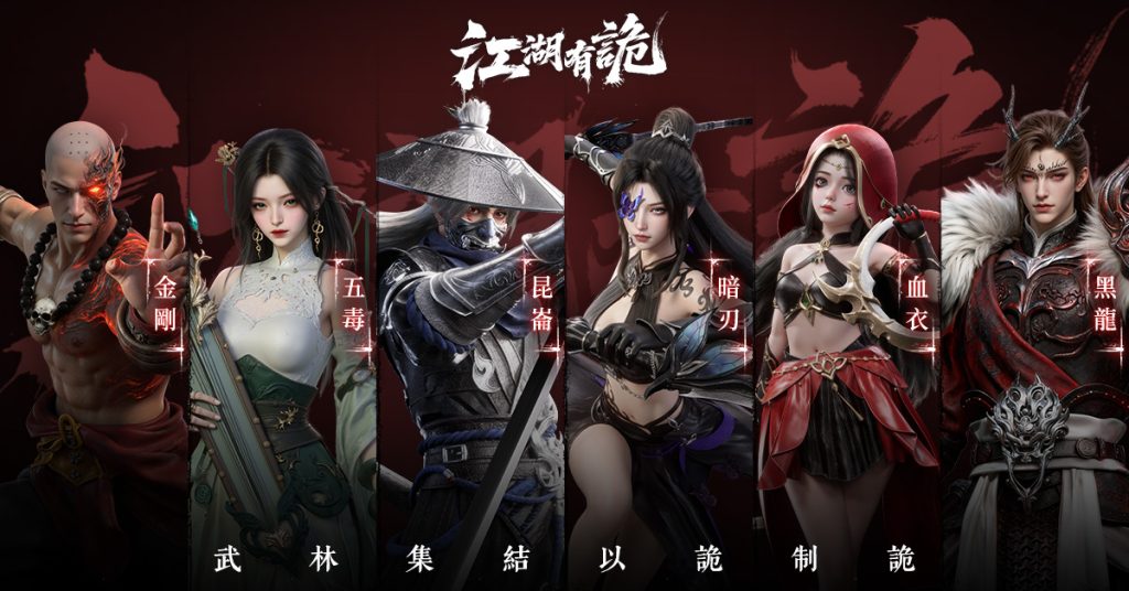 崑崙憑借無可匹敵的邪門劍法聞名江湖,瞬間便能爆發出毀滅性的傷害;暗刃潛行於黑夜之中,執輕盈雙劍完成致命收割;五毒優雅操縱琴弦,卻能在遠程釋放出大範圍傷害,殺人於無形;血衣手持陰陽輪,憑藉精妙走位隱匿身形,給予敵人無法迴避的致命一擊;黑龍揮動裂骨重錘,以炸裂的爆發力震撼全場,同時還能保證自身堅韌不倒;而金剛則如磐石般屹立前線,以強大防禦力成為隊伍中最堅實的後盾。