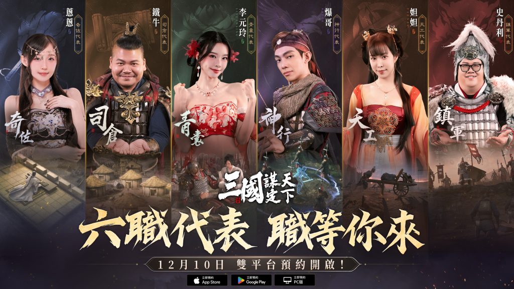 官方此次更特別邀請台港澳新馬地區六位高人氣網紅,化身《三國:謀定天下》中的六大職業代表,共同為即將到來的公測宣傳造勢。