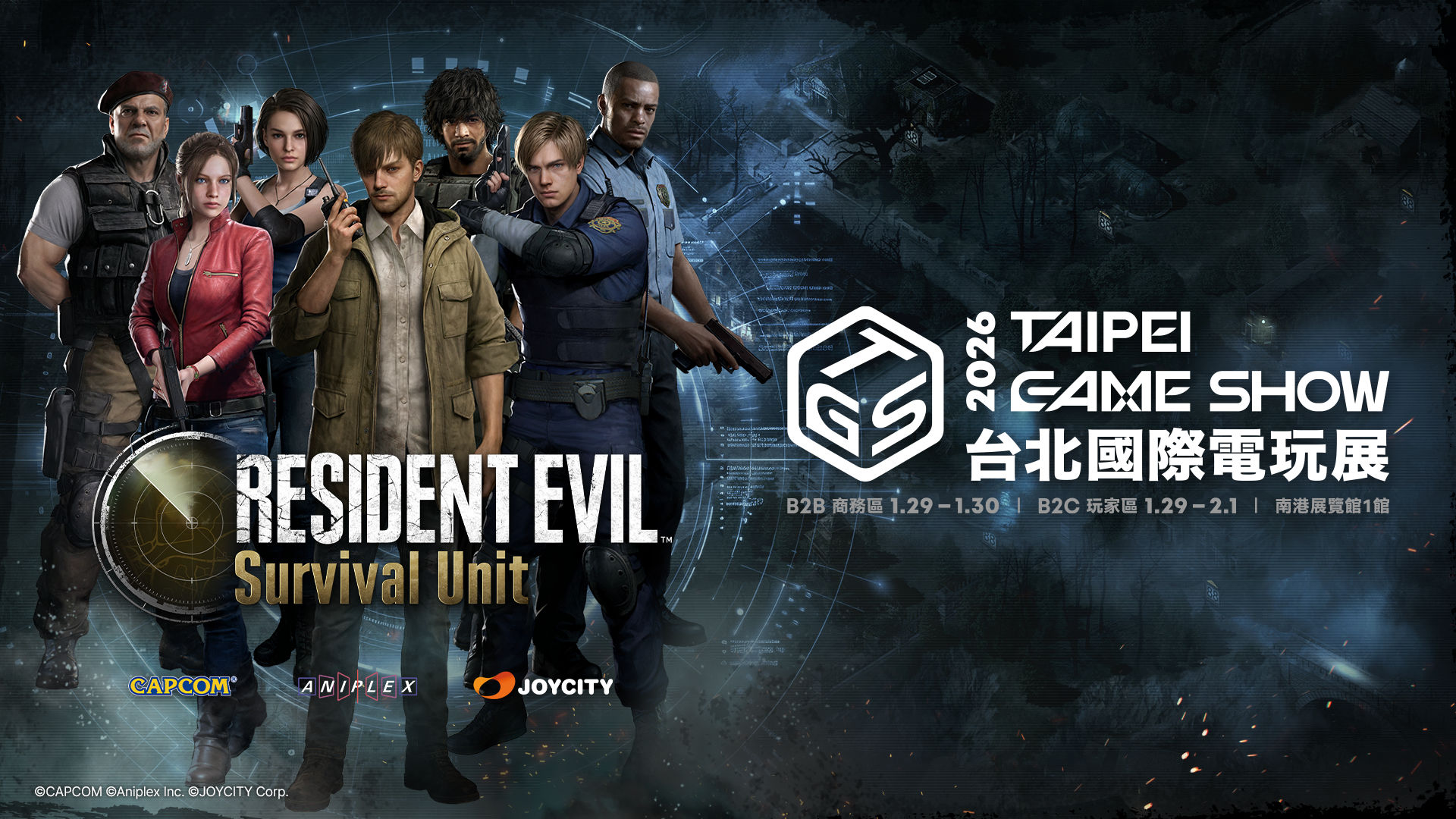 Aniplex 株式會社(總公司:東京都千代田區,代表董事:岩上敦宏,以下簡稱「Aniplex」)宣布,與 JOYCITY Corporation(總公司:韓國京畿道城南市,代表董事:趙成元,以下簡稱「JOYCITY」)共同開發的智慧型手機新作策略遊戲《Resident Evil Survival Unit》(中譯:生化危機 生存兵種),將參加於 2026 年 1 月 29 日(四)至 2月 1 日(日) 舉辦的 2026 Taipei Game Show 台北電玩展。
