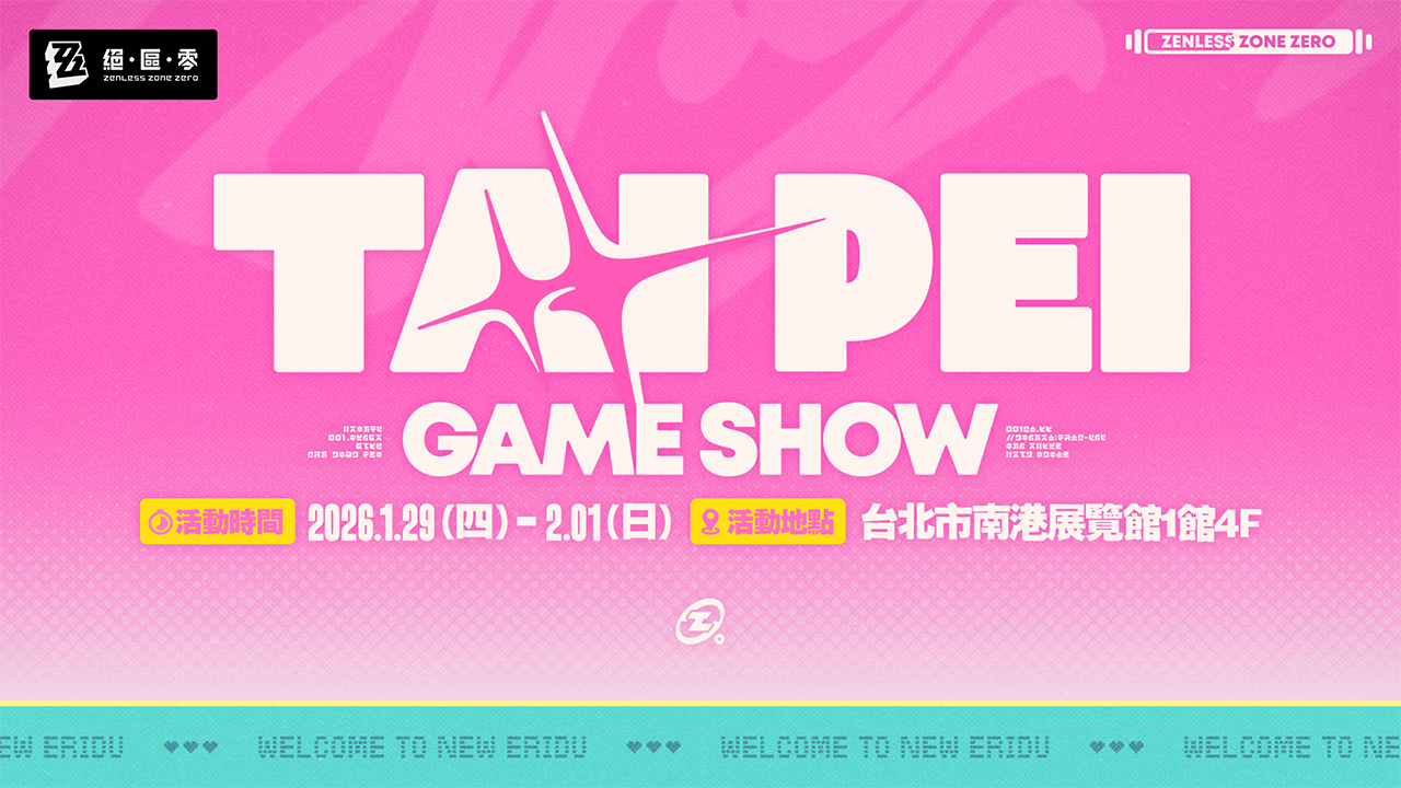 由NIJIGEN代理發行、HoYoverse開發的3D角色扮演類動作遊戲《絕區零》即將在2026台北國際電玩展與各位繩匠見面!官方今日公開展位的詳細資訊,讓繩匠能夠提前做好準備。本次《絕區零》參展將於現場設置繩匠專屬的快速入場通道,提供便利舒適的進場體驗。從報到驗證、場景互動打卡,到周邊購買與舞台表演,官方精心規劃了完整的參展流程,並搭配豐富的周邊商品與多層次的滿額獎勵機制。敬邀各地繩匠於1月29日至2月1日蒞臨台北南港展覽館,展開一場充滿驚喜的新艾利都冒險之旅。