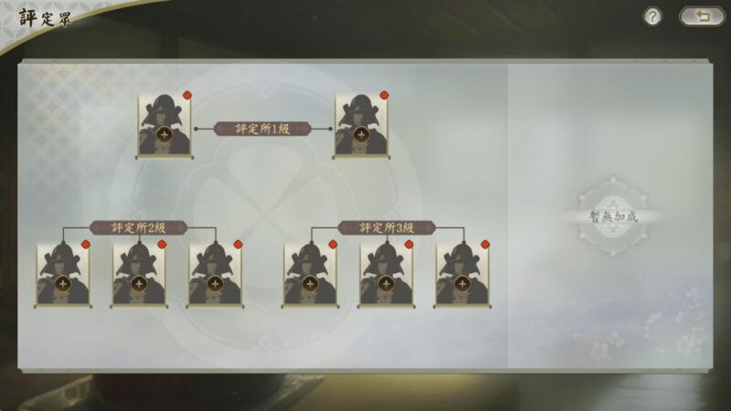 當天守等級達到8級後,即可建造新增的內政設施「評定所」。建造完成後,玩家便可在奉行所進入評定介面任命武將作為「評定眾」。