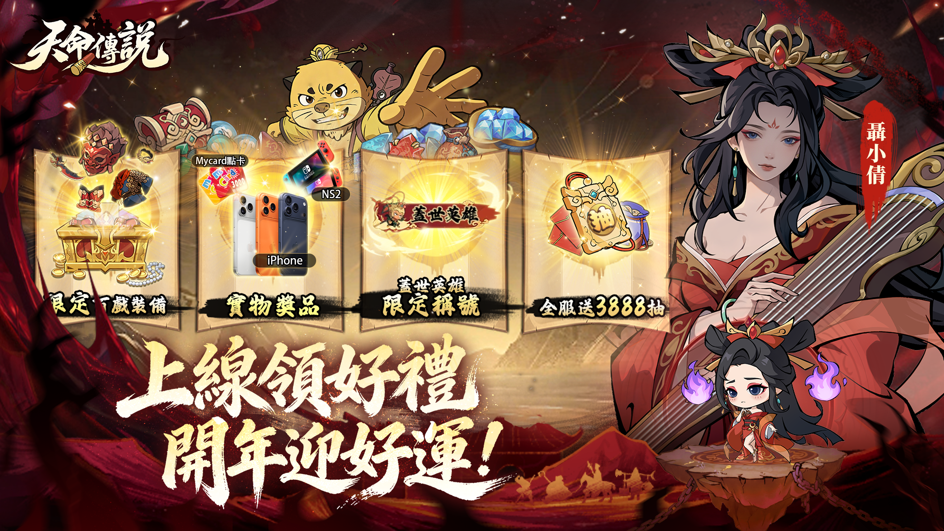 除上述通用福利外,上市期間更推出多項限時目標活動,直接贈送核心神將,助力天命人戰力飛升: