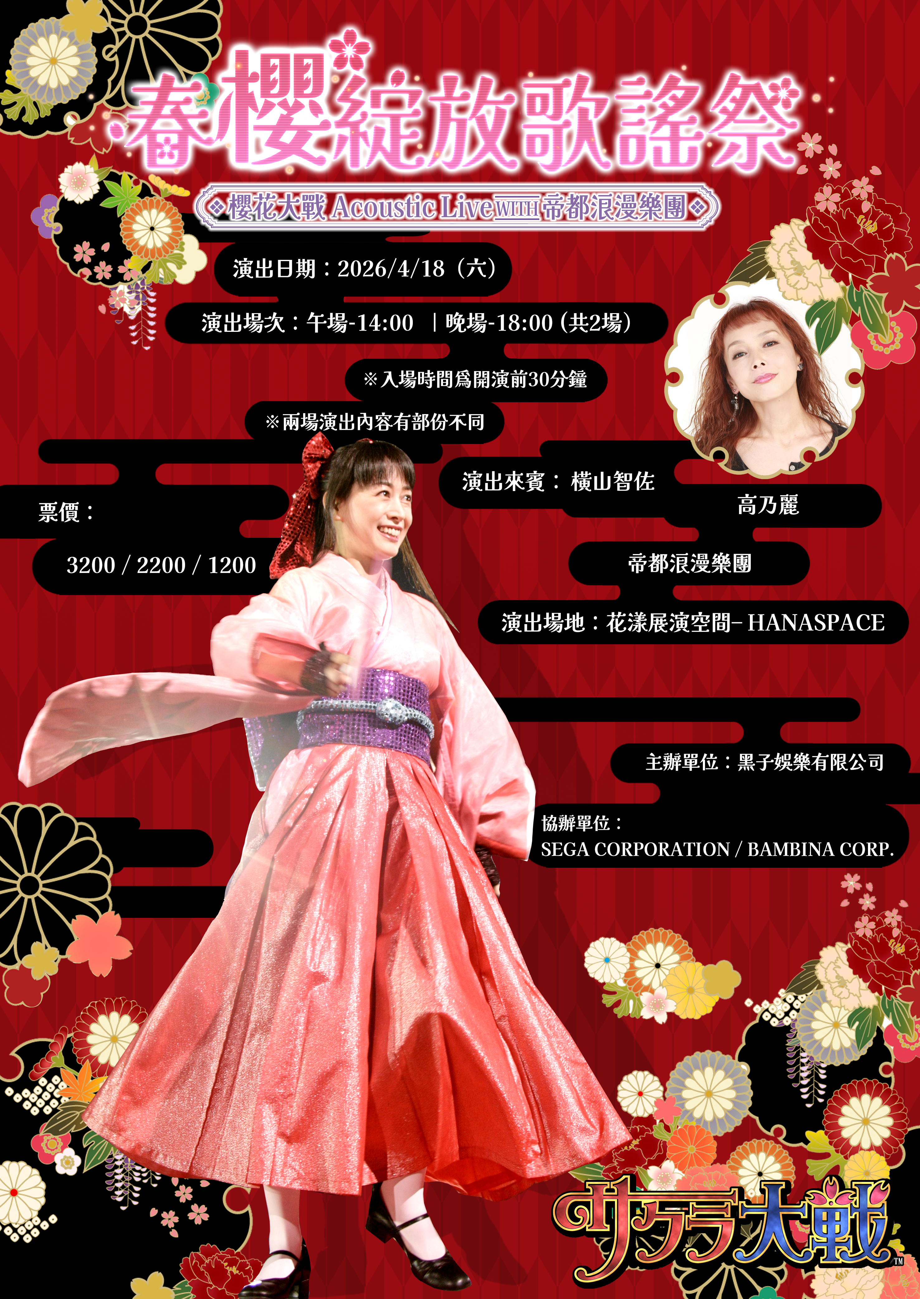由黑子娛樂主辦,《櫻花大戰》系列特別演唱會《春櫻綻放歌謠祭 櫻花大戰Acoustic Live WITH 帝都浪漫樂團》正式宣布,將於 2026 年 4 月 18 日(六) 在花漾展演中心舉行。