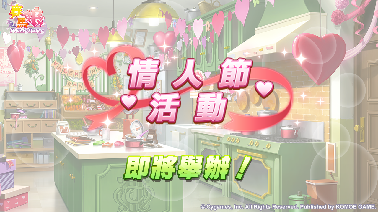 自2月14日 12:00起,將舉辦特別的「情人節活動」!屆時每天可透過主頁面的專用按鈕,選擇1名已獲得的培育賽馬娘,獲得該培育賽馬娘贈送的情人節禮物!