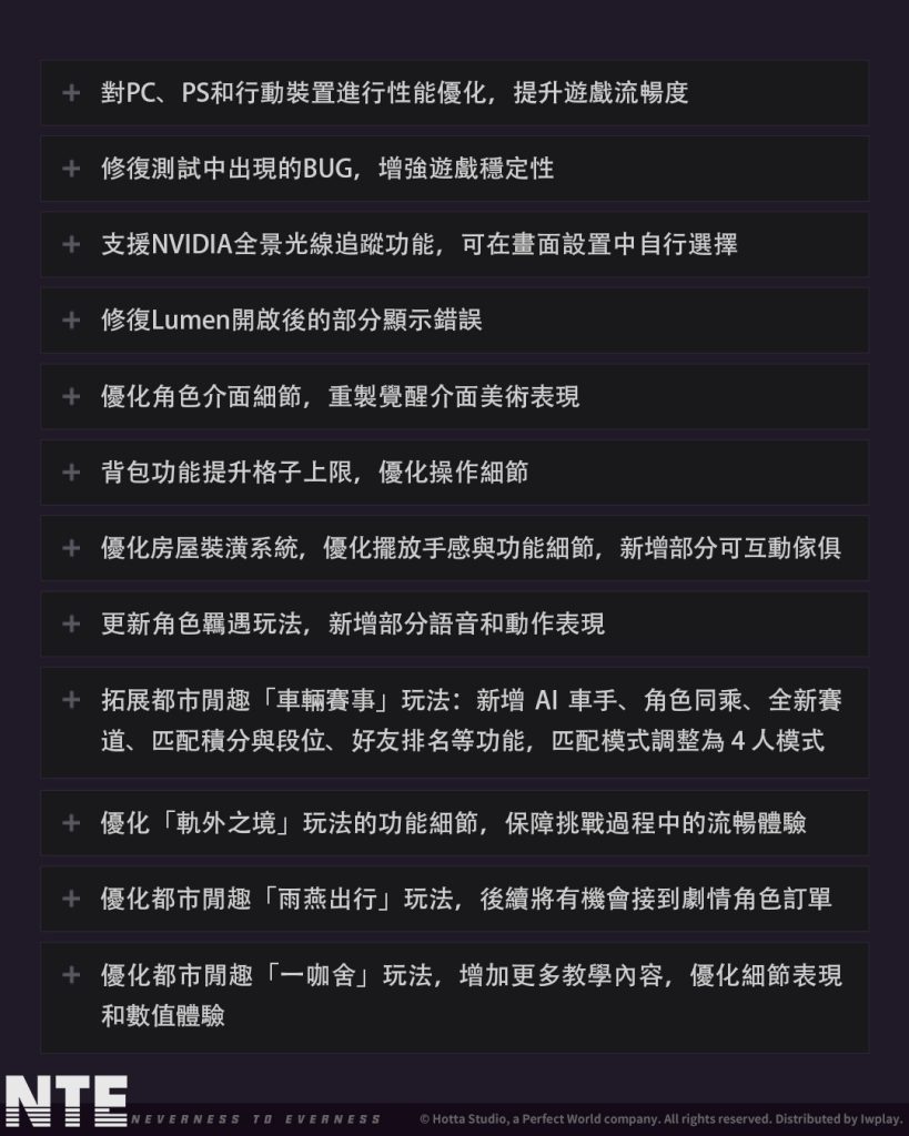 在「共存測試」期間,《異環》運營團隊收到了鑒定師大量且真情的支持與回饋,在迎接4月29日上市來臨之際,團隊將依據測試期間的建議持續進行整體體驗優化,包含修復已知問題、提升穩定度與操作流暢性,並同步強化角色表現與玩法內容。