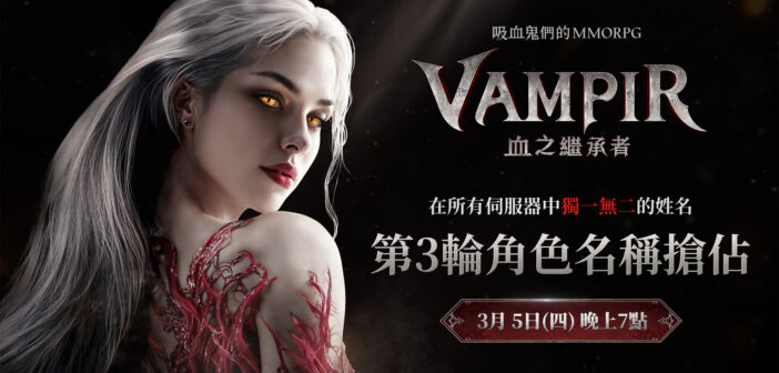 身為知名高品質遊戲開發與發行商的網石集團(Netmarble Corporation)宣布,旗下即將登場的大規模吸血鬼風格MMORPG《VAMPIR:血之繼承者》將於3月5日晚間7點正式展開第三波角色名稱搶占活動,為3月11日正式上市暖身。