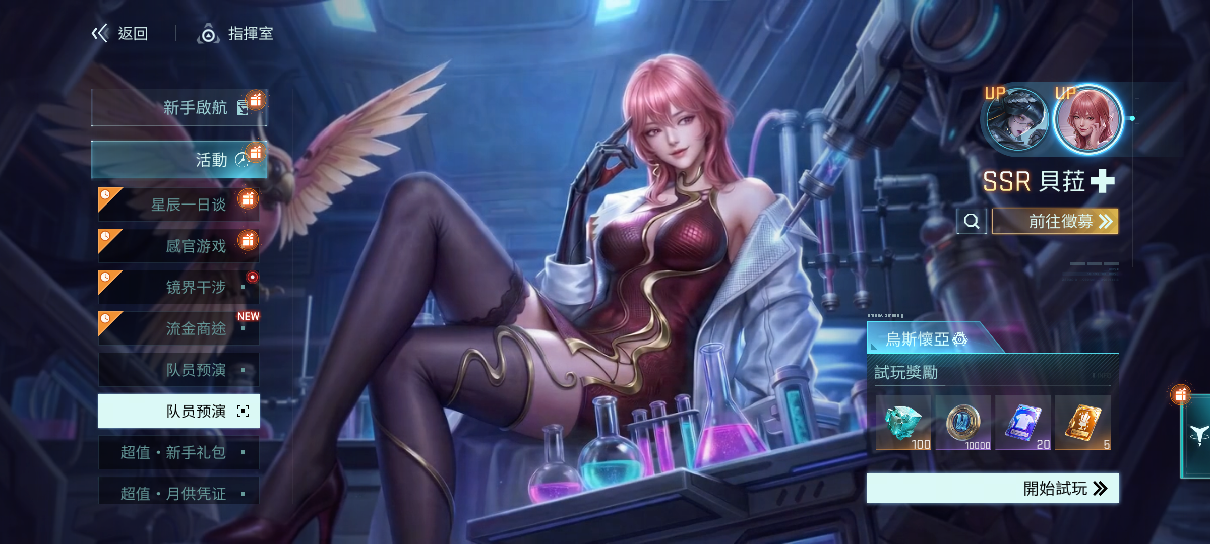 活動說明:活動期間,前往「黑盾徵募- 限時定向徵募」,徵募到SSR隊員時,必定獲得「貝菈」、「塔尼婭」兩個UP隊員其中之一。